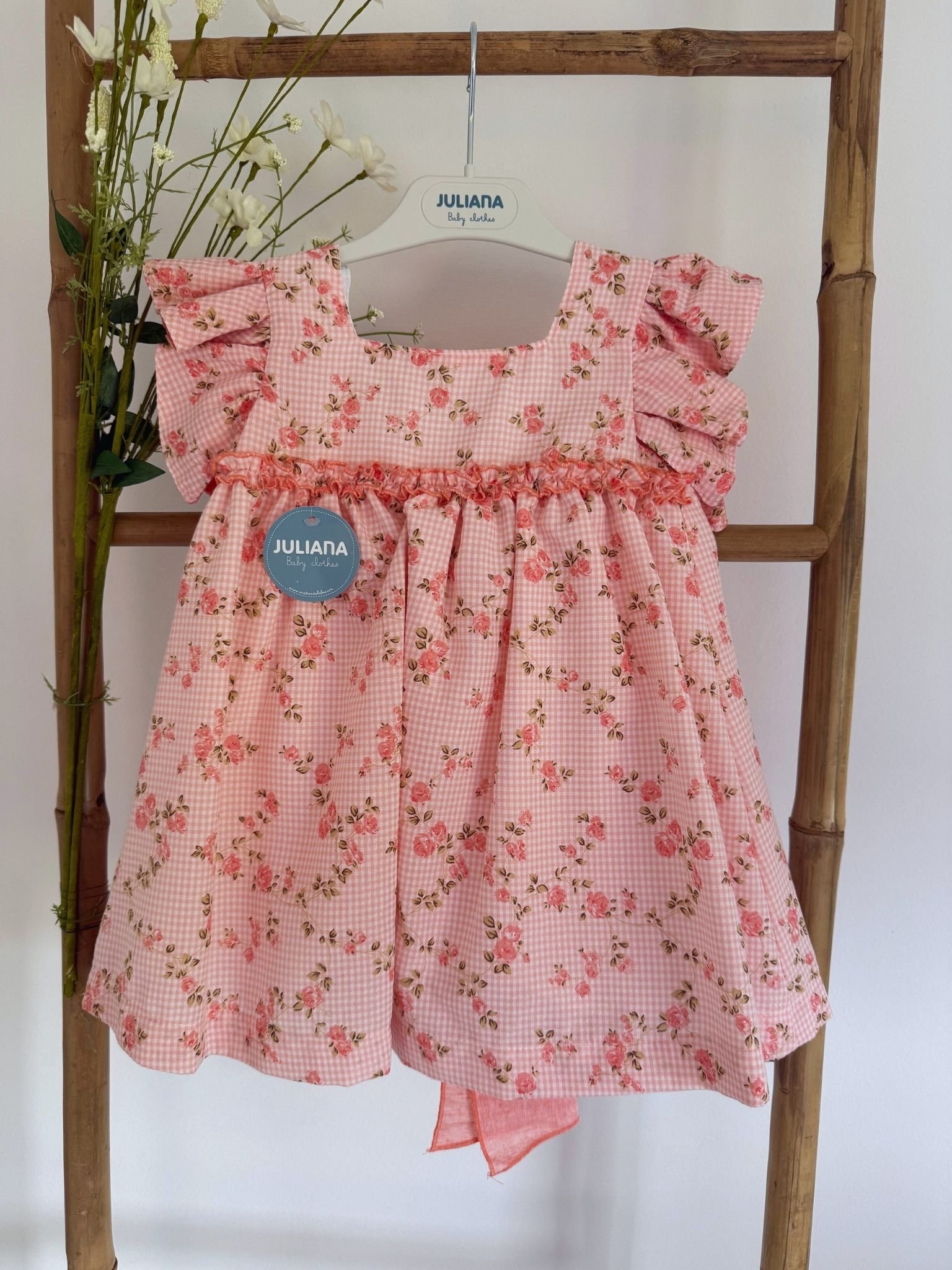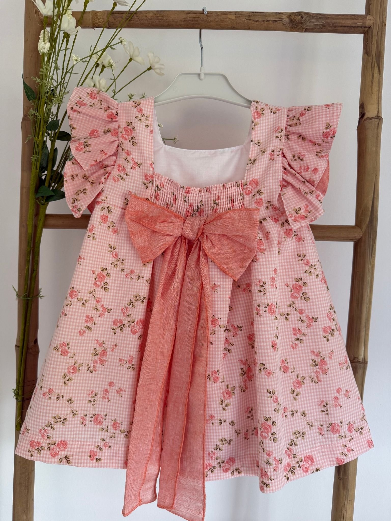 Vestido de manga curta para menina. Modelo com gola quadrada, botões e um lindo laçarote decorativo nas costas. Tecido fluído para proporcionar o máximo conforto no dia a dia. Modelo com pregas e estampa floral.